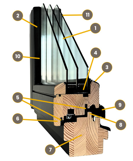 - Uszczelka przylegająca bezpośrednio do ramy drewnianej (zapewnia lepszą izolację cieplną)